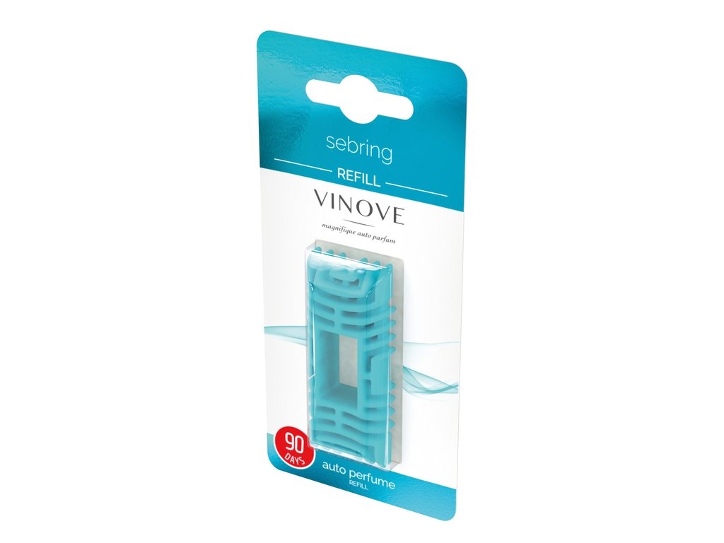Refill Vinove air freshener Sebring is a mix of the freshness of citrus with the juicy scent of melon in a crystal clear waterfall. This refill fits all Vinove Original air fresheners and lasts up to 90 days.