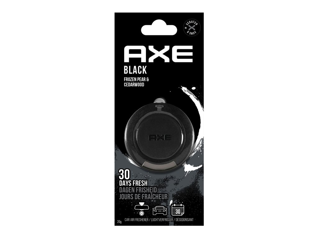 Verfris de auto met de bekende authentieke Axe geur Black. De Axe 3D luchtverfrisser verspreidt heerlijke geuren van bergamot, rozemarijn en cederhout. De luchtverfrisser is met de haak eenvoudig aan de binnenspiegel van de auto te hangen en werkt tot 30 dagen.